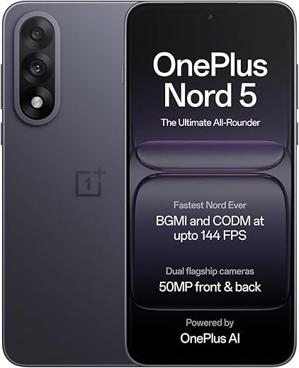 The OnePlus Nord 5 continues the brand’s legacy of delivering flagship-like features at a competitive price. With a sleek, premium design and a vibrant AMOLED display with 120Hz refresh rate, the device offers a smooth and immersive viewing experience. Powered by the Snapdragon 7 Gen 3 chipset, it handles multitasking, gaming, and daily tasks efficiently with minimal lag.