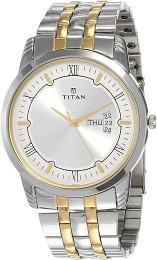 Elevate your everyday style with the Titan Karishma Watch. This timepiece features a sleek silver dial with day and date display, housed in a polished two-toned stainless steel strap of silver and gold. Roman numeral accents add a refined touch to Its clean, minimal design. Whether you’re dressing for a boardroom or a casual outing, this watch brings a perfect blend of sophistication and utility to your wrist.